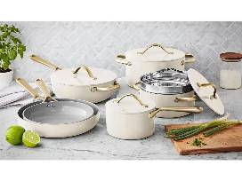 This modern Ceramic Cookware is a stylish addition to the kitchen that makes healthier cooking easy. Enjoy perfectly cooked steaks, stews, scrambled eggs and sauteed veggies with this versatile set of pots and pans, including two Dutch ovens. Featuring nonstick interiors and durable heavy-gauge aluminum construction, this long-lasting set of cookware makes it so you can cook with less oil and fast cleanup.