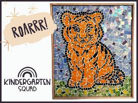 Awesomely cute mosaic tiger assembled by our equally cute Kindergarteners!