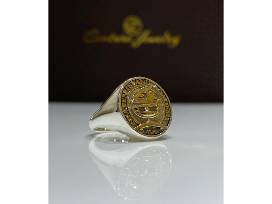 0Presenting an exquisite Staten Island Academy ring, a true masterpiece that captures the essence of elegance and distinction. The pinnacle of this ring is meticulously crafted from 18k yellow gold, adorned with an antique finish that adds a touch of timeless sophistication. Impeccably detailed, it proudly showcases the intricate elements of the SIA logo, symbolizing the essence of the Academy.