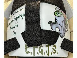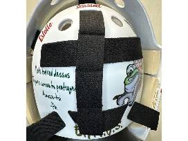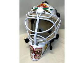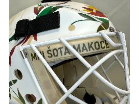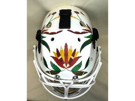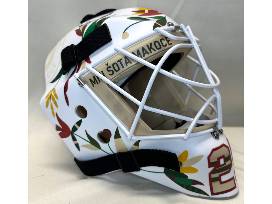 One-of-a-kind goalie mask made specifically for and autographed by Wild goaltender Marc-Andre Fleury, and designed by Cole Redhorse Taylor, a member of the Prairie Island Indian Community.