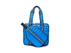 Think Royln Pickleball bag from HipChik -- Blue patent leather shoulder strap bag