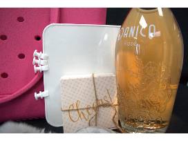 Immerse yourself in a world of luxury and relaxation. Stay organized and stylish on-the-go with the versatile pink Bogg Bag. Experience the ultimate sleep comfort with a luxurious Blissy 100% Mulberry Silk Pillowcase renowned for its smoothness and skin benefits. Then, treat your feet to plush comfort with a pair of gray Taylor Lee Slippers. A magnum bottle of Danica Rose, named after famous race car driver Danica Patrick, is the perfect thing to help you relax. Level up your mixology game with the Yeti Cocktail Shaker attachment, ensuring perfectly crafted cocktails every time.