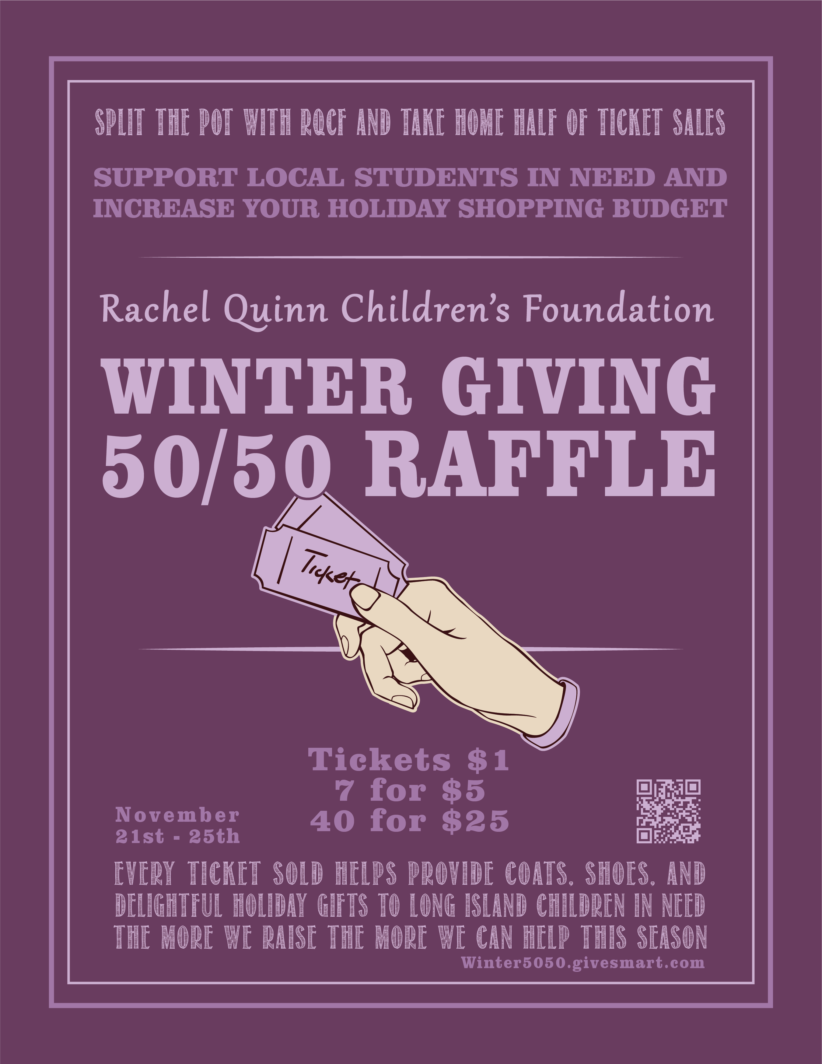 Join us in our 50/50 winter raffle event, where every ticket sold helps provide coats, shoes, and delightful holiday gifts to Long Island children in need.