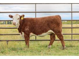 Here is the natural calf from our C BlackHawk Down bred donor. Her maternal sisters are Lots 1 and 2 in the sale. This heifer has brood cow written all over her. Moderate framed, Strong topped, deep middle, structurally sound, added muscle, and she is POLLED. Check out this heifer's pedigree. You can't help but notice the maternal greats in her pedigree.