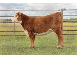This heifer goes back to our foundation cow family here at the ranch. We do NOT offer females out of this cow family very often so take the chance while you have it. This polled, moderate framed heifer has length of spine, good bone, sound feet, and has a presence when you walk into the pasture. She is in the top 5% for Milk and Growth and top 4% for weaning weight. Check out the bull power backing her! She has Maninfest 87G, Golden Oak outcross 18U, and Durango 4037 all tucked away in one package