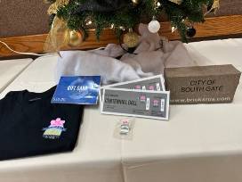 The Centennial Tree celebrates the 100 Year Anniversary of the City of South Gate. Join us as we close out the yearlong celebration with 2 tickets to the Centennial Ball. You will also have the opportunity to engrave your family name on a Centennial Brick which will be placed in the walkway of City Hall for the next 50 years. In addition, you'll be able to enjoy a $50 shop South Gate gift card in style as you sport your new South Gate Centennial t-shirt, drawstring bag and lapel pin. Value $250