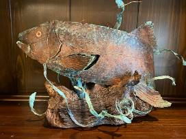 Raised Copper Sculpture (Acid Washed) titled "Hooked on a Rainbow IV". Dimensions: 13"w x 9"h x 9"d Base is Weathered Live Oak Root. Item can be seen at the gallery here https://www.gallery195.com/shop