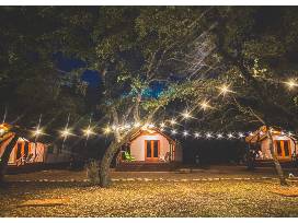 Enjoy a 2 night stay for 2 in a Safari Lodge at Mystic Quarry! This modern Texas Glamping and RV resort is located minutes from the Guadalupe River and Canyon Lake in the heart of Hill Country. You don“t have to sacrifice the comforts of home for a taste of the wild. Our safari lodges are the ultimate glamping experience with a private bedroom, relaxing covered porches, propane fire pit, and air conditioning/heat. These units also include a mini-fridge, microwave, coffee maker, living room area, and full bathroom with a rainfall shower. Let us elevate your camping experience! Seek a Higher Campground.