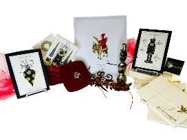 Fa la la la la! It's time to get prepared for the holiday season with a portrait of Santa from an original egg tempera painting by Millicent Decker; a holiday Longaberger basket; eleven packs of Christmas cards from S.E. Hagarman Designs; and a snowman statue from Roland Metal Art.