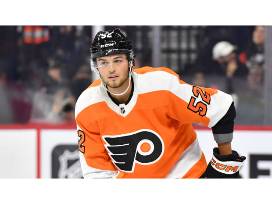 Philadelphia Flyers Tyson Foerster #71 autographed hockey puck. Certificate of authenticity included.